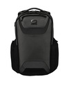 840D poly two-tone PU; 1,680D poly PU Spacious main compartment Easy-access padded laptop/tablet compartment Front fleece-lined front pocket for valuables and phone Interior organization panel with zippered front and key ring Fleece-lined front pocket for valuables and phone Exterior USB charging port Interior cord for charging Integrated padded luggage trolley pass through on back Zippered side pockets with fabric gussets for valuables and water bottles Ergonomic adjustable shoulder straps Padded back panel Reflective panels on front Dimensions: 19'h x 11'w (top) x 14'w (bottom) x 9'd Capacity: 1,586 cu. in./26 L Weight: 2.1 lbs./1.3 kgs Laptop sleeve: 16.5'h x 12'w; fits most 17' laptops Note: Bags not intended for use by children 12 and under.