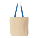 Liberty Bags 10 Ounce Marianne Cotton Canvas Tote Bag. 10 oz 100% cotton canvas. Gusset bottom, contrasting polypropylene. 22 inch handles with a 10 drop. 10wx10.5xh