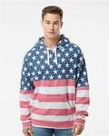 J America Adult 7.5 Ounce Tailgate Fleece Hood. 7.5 ounce, 60/40% Cotton/Polyester fleece. Built in Neoprene beverage holder/security pocket inside front pouch pocket. Metal bottle/can opener attached to inside pocket. Coverstitched throughout. Officially Licensed Huzu Product.