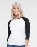 LAT Ladies 4.5 Ounce Baseball Fine Jersey T-Shirt. Fit: Ladies Modern - Semi-fitted. 100% combed ringspun cotton fine jersey (Vintage Colors are 60/40 combed ringspun cotton/polyester). Flatlock stitch ribbed collar and raglan armholes. Contrast double needle hem raglan 3/4 sleeves. Raw serge shirt tail hem bottom. Side seam construction. EasyTear label.